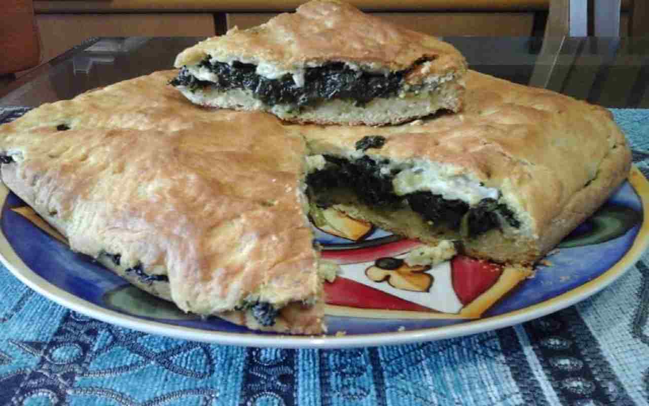 Successivamente, prendere delle fette di provola e sistemarle sulla base della focaccia, aggiungere le erbette ripassate e coprire con il resto della provola. Stendere l’impasto restante su un altro foglio di carta forno infarinato e posizionarlo sopra la focaccia, sigillando i bordi premendo con le dita.