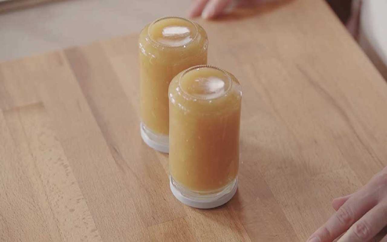 Una volta che la marmellata è pronta, si consiglia di frullarla per renderla omogenea ed eliminare eventuali pezzetti di frutta. A questo punto si passa a riempire i vasetti, che devono essere nuovi e sterilizzati, spingendo ogni tanto la marmellata verso il basso per evitare la formazione di bolle d’aria.