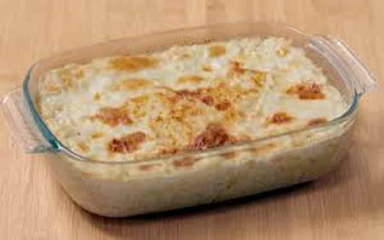 Il procedimento per preparare questo piatto inizia con l’ammollo del riso in acqua per circa dieci minuti. Una volta scolato, metà del riso viene disposto sul fondo di una pirofila imburrata. Questo strato di riso viene salato e condito con olio extravergine d’oliva, noce moscata e pepe. Successivamente, viene aggiunto uno strato di prosciutto cotto seguito da mozzarella tagliata a listarelle. Per completare il primo strato, viene spolverato un po’ di formaggio grattugiato e viene ricoperto con l’altra metà del riso, livellando bene il tutto. Ancora una volta, viene aggiunto un pizzico di sale e una generosa presa di formaggio grattugiato. In superficie, vengono aggiunti fiocchetti di burro per rendere il piatto ancora più cremoso.