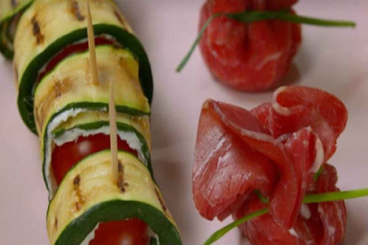 Il tocco finale consiste nell’aggiungere un pomodorino al centro di ogni fetta di zucchina e arrotolarla su se stessa, chiudendo il rotolo con uno stuzzicadenti. Questo procedimento va ripetuto per tutte le fette di zucchine grigliate, creando così gli spiedini pronti da gustare. Gli ingredienti principali necessari per questa ricetta sono le zucchine, il formaggio spalmabile e i pomodorini, che conferiscono freschezza e sapore al piatto.