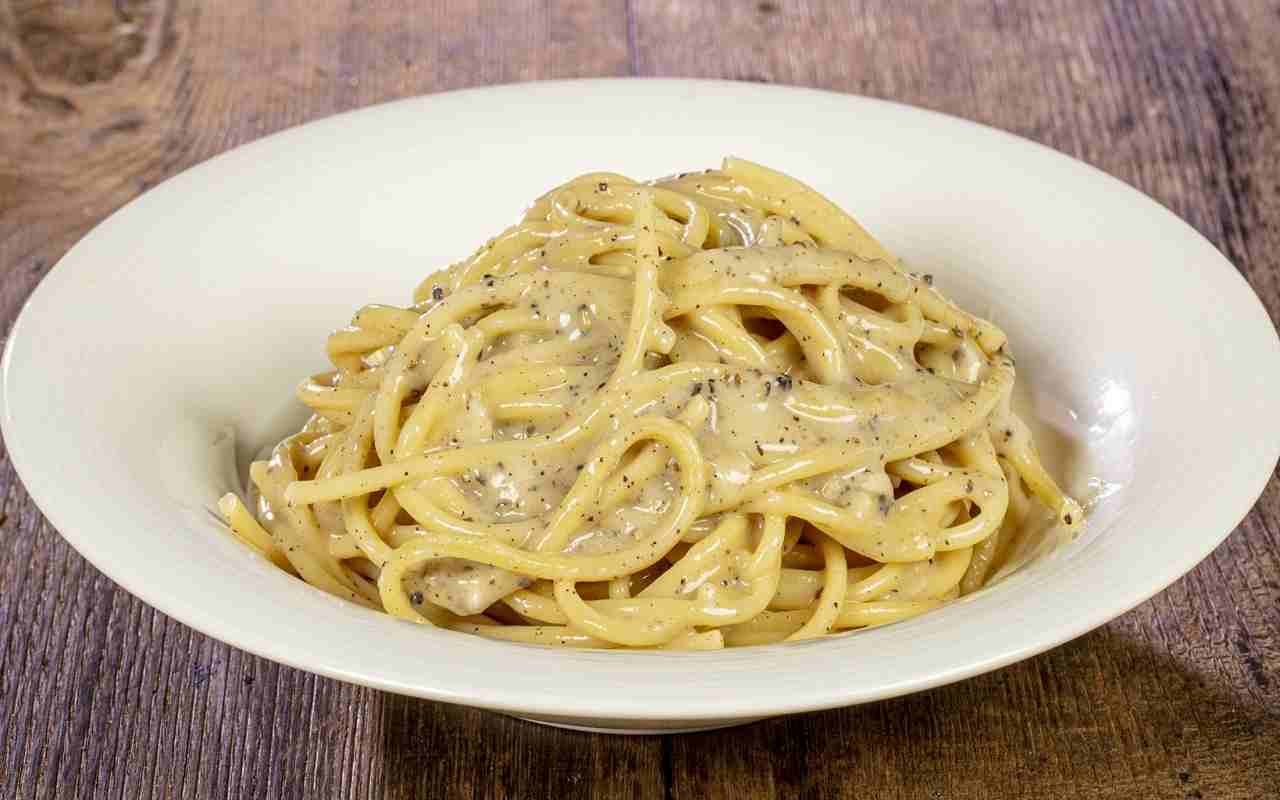 Una volta che il pepe inizia a scoppiettare, si può aggiungere un mestolo di acqua di cottura in padella per creare una base cremosa per gli spaghetti. A questo punto, la pasta molto al dente può essere trasferita nella padella con il pepe e terminare di cuocerla aggiungendo l’acqua di cottura necessaria. Quando la pasta è cotta e il liquido in padella è quasi completamente assorbito, è importante allontanare dal fuoco e far intiepidire per almeno un minuto.