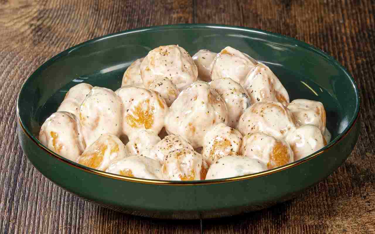 A questo punto, si forma degli filoncini con l’impasto su un piano infarinato. Si prendono dei pezzetti di piccole dimensioni e si formano delle palline. È importante manipolare l’impasto con le mani infarinate per evitare che si appiccichi.