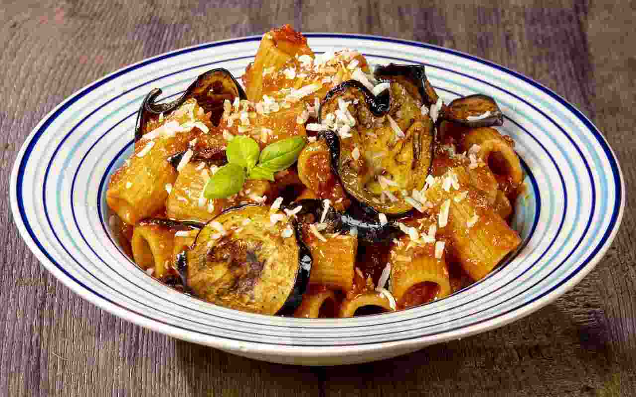 Mentre le melanzane cuociono, si porta a ebollizione una pentola di acqua salata per la cottura della pasta. Una volta cotta al dente, la pasta viene scolata e tenuta da parte.