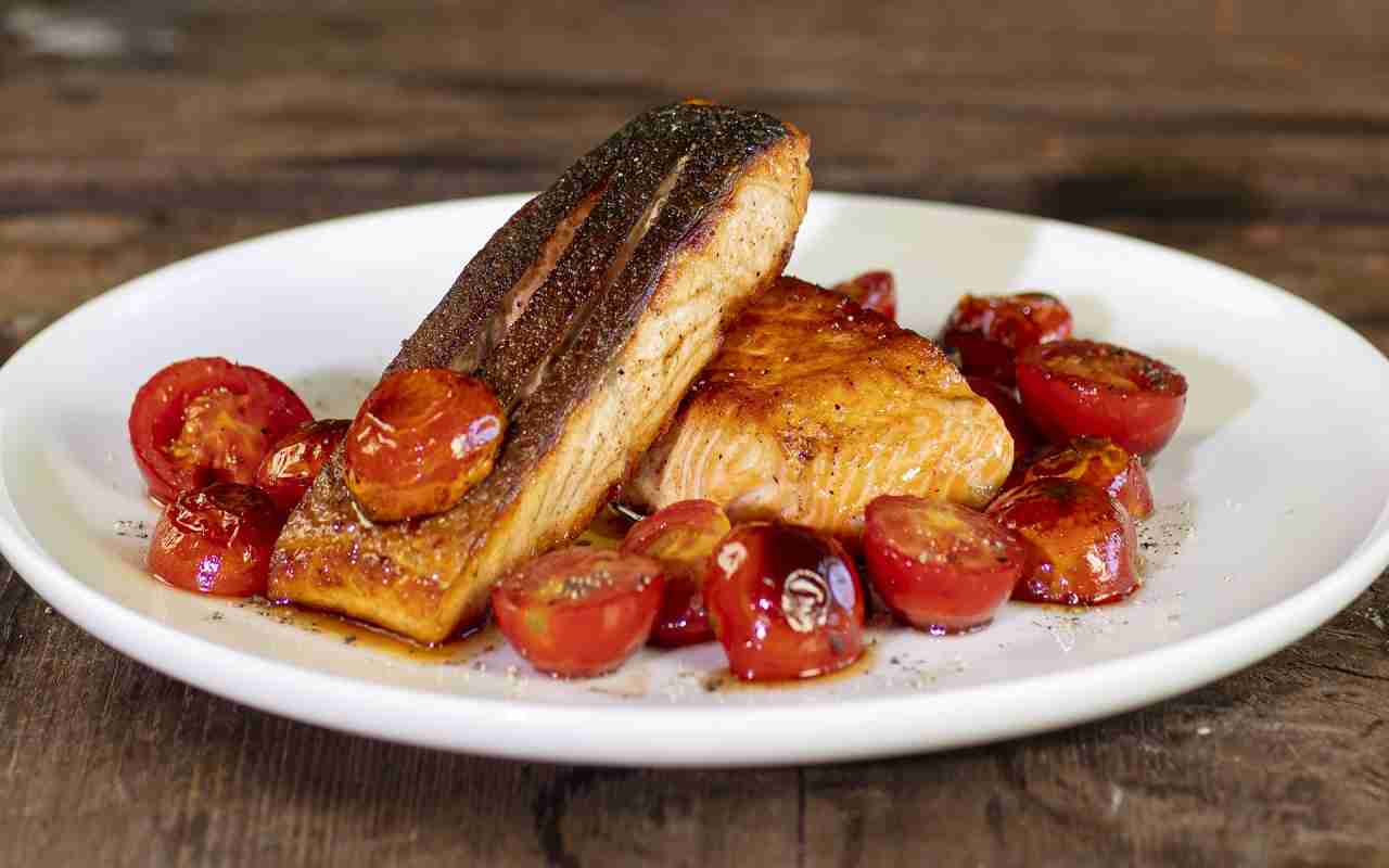 Gli ingredienti necessari per questa ricetta sono semplici e facilmente reperibili: filetti di salmone, pomodorini, aglio, sale e olio extravergine d’oliva. Questi elementi combinati insieme creano un piatto dal gusto intenso e ricco di contrasti, perfetto per un pranzo o una cena speciale. Il salmone in padella proposto da Luca Pappagallo è un’ottima soluzione per chi desidera portare in tavola un piatto di pesce gustoso, ma allo stesso tempo veloce da preparare.