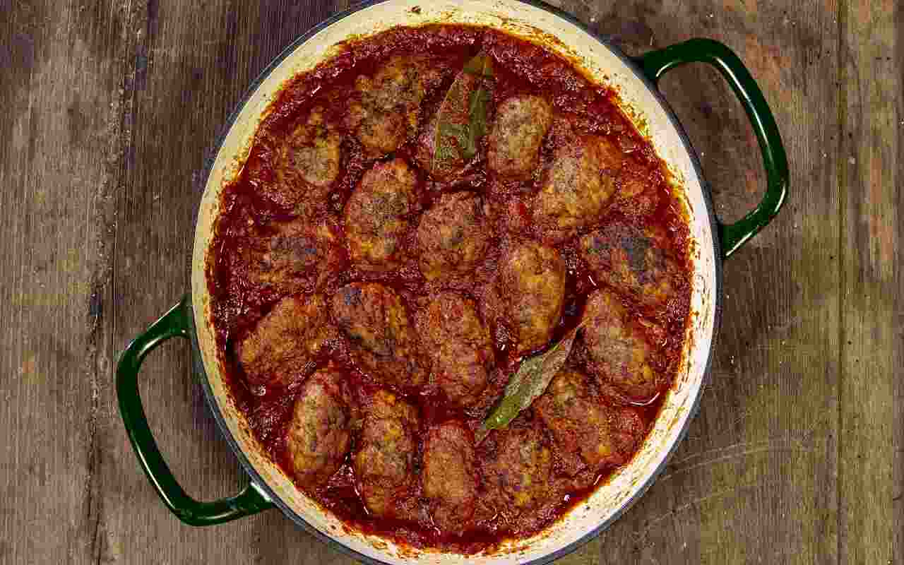 Formate delle polpette con l’impasto di carne, passatele nella farina e friggetele in abbondante olio caldo fino a dorarle su tutti i lati. Ci vorranno circa 5 minuti di cottura, mantenendo il fuoco moderato per cuocerle uniformemente. Scolate le polpette su carta assorbente per eliminare l’olio in eccesso e trasferitele nella casseruola con la salsa di pomodoro.