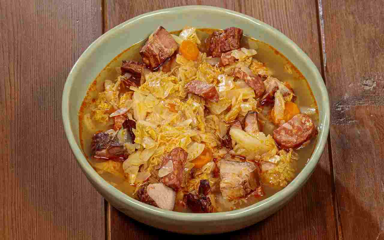 La preparazione di questa zuppa è abbastanza semplice e richiede solo un po’ di pazienza durante la cottura a fuoco dolce. È importante rosolare bene la pancetta affumicata all’inizio, in modo da sviluppare i suoi aromi e renderla croccante. L’aggiunta della paprika piccante conferisce un tocco di piccantezza che si bilancia perfettamente con la dolcezza dei cavoli e il sapore intenso del salame.