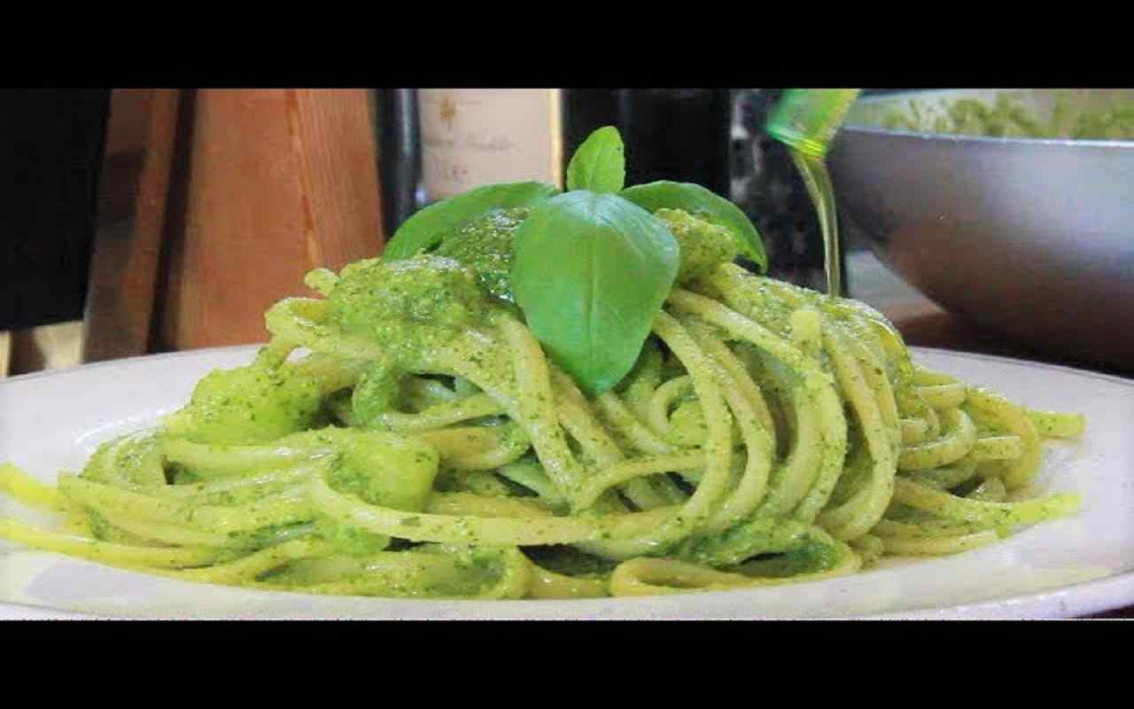 Una volta che l’impasto ha riposato, si stende con il mattarello fino a ottenere una sfoglia non troppo sottile, che viene poi arrotolata su se stessa e tagliata per ricavare delle lunghe tagliatelle, gli strangozzi. Queste vengono cotte in abbondante acqua salata e condite con il pesto, previamente stemperato con un po’ d’acqua di cottura. Per completare il piatto, si aggiungono foglie di basilico fresco e noci, che conferiscono un tocco di freschezza e croccantezza al piatto.