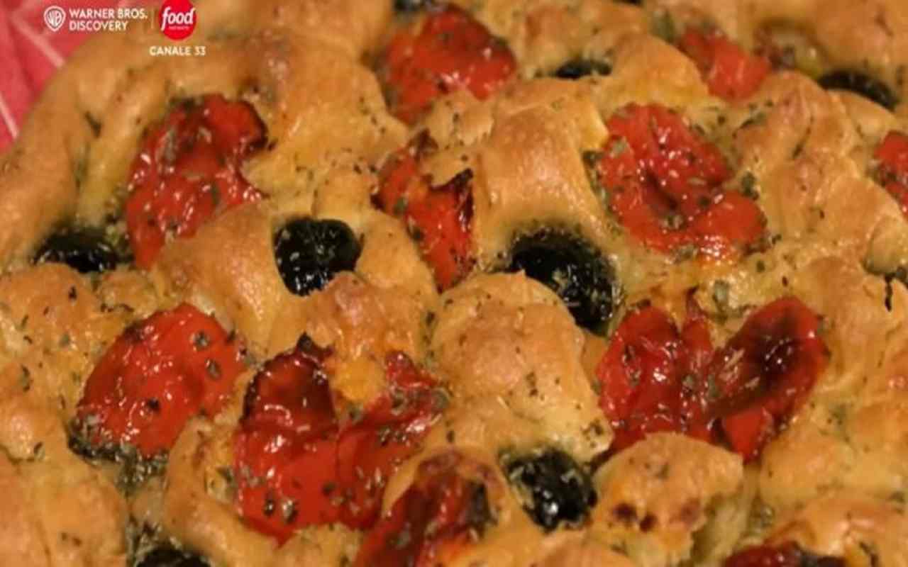 Con le mani, si preme sulla superficie dell’impasto, creando degli incavi. Si aggiunge un filo d’olio e si dispongono sopra i pomodorini rotti con le mani, le olive nere e una spolverata di origano e sale. Dopo aver coperto nuovamente l’impasto, si lascia riposare per ulteriori 20 minuti. Infine, si cuoce il tutto in forno caldo e statico a 150° per circa 25 minuti.