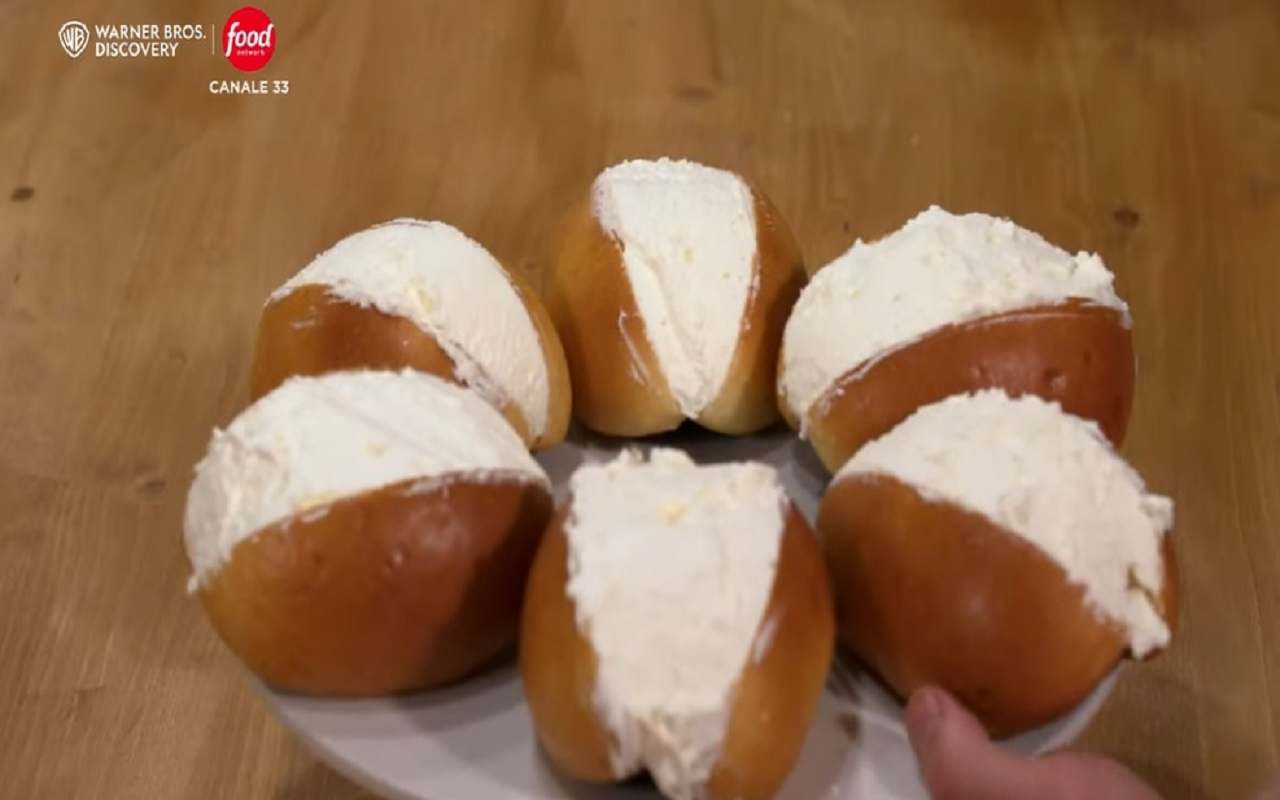 Dopo la lievitazione, cuociamo i maritozzi in forno caldo a 180°C per circa 18 minuti. Una volta cotti e raffreddati, incidiamoli al centro dalla parte superiore e farciamo il taglio con panna montata e zuccherata.