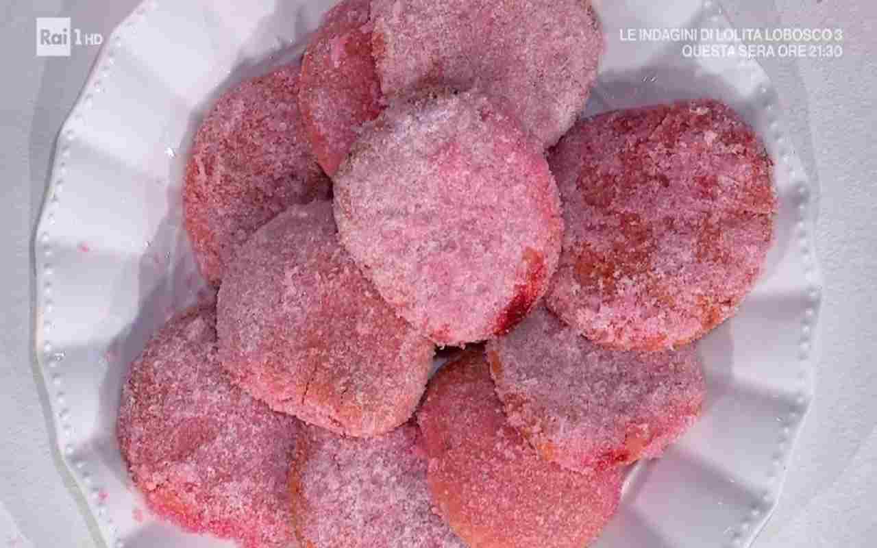 Le raviole vanno cotte nel forno già caldo a 180°C per circa 15 minuti, fino a quando saranno dorate. Nel frattempo, si prepara uno sciroppo con acqua e zucchero, spegnendo la fiamma e aggiungendo l’alchermes. Una volta cotte le raviole, vengono immerse brevemente nella bagna alcolica e infine rotolate nello zucchero semolato per una finitura dolce e croccante.