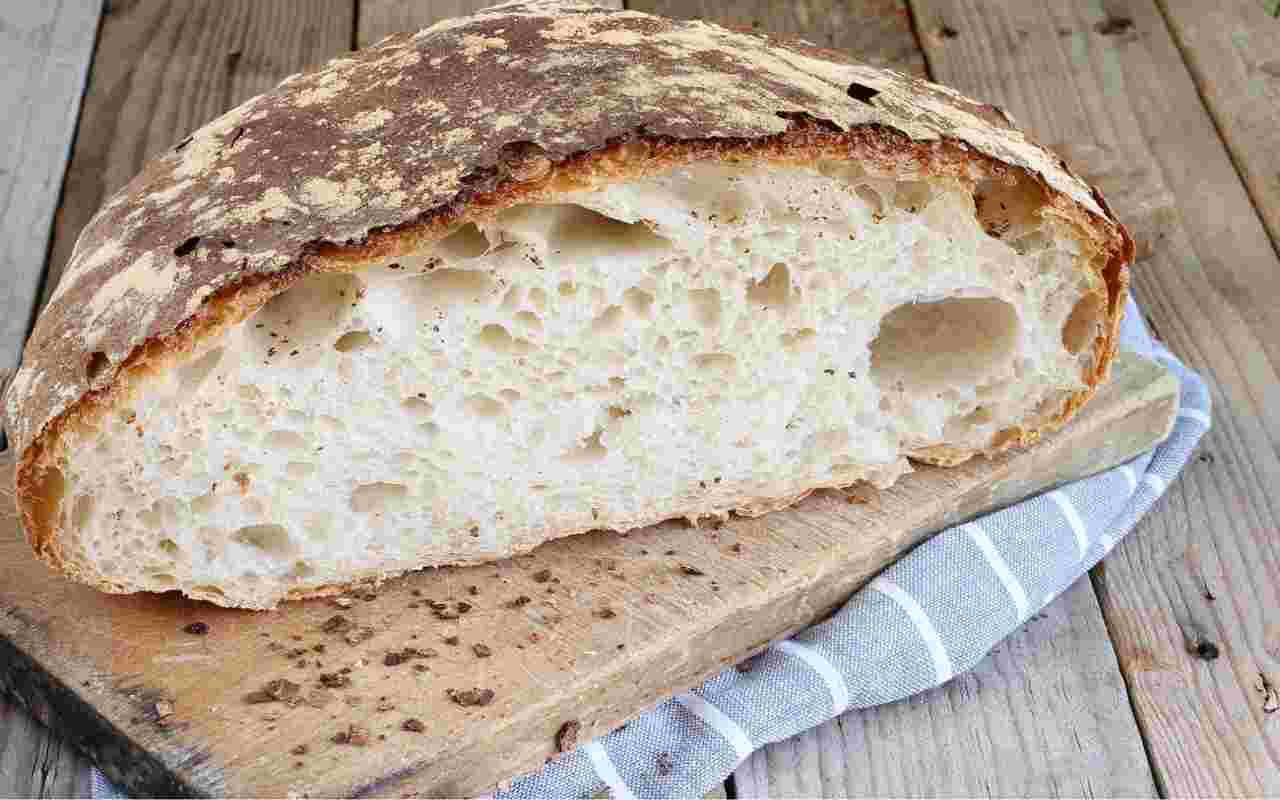 La ricetta del pane cafone prevede la realizzazione di tre diversi impasti. Per iniziare, si deve preparare il primo impasto usando 70 grammi di lievito madre e acqua. Dopo aver sciolto il lievito, si aggiunge la farina 0 e si impasta fino a ottenere una pallina liscia ed omogenea. Questo impasto va lasciato lievitare per almeno 3 ore in una ciotola coperta con pellicola, all’interno del forno spento con la luce accesa.