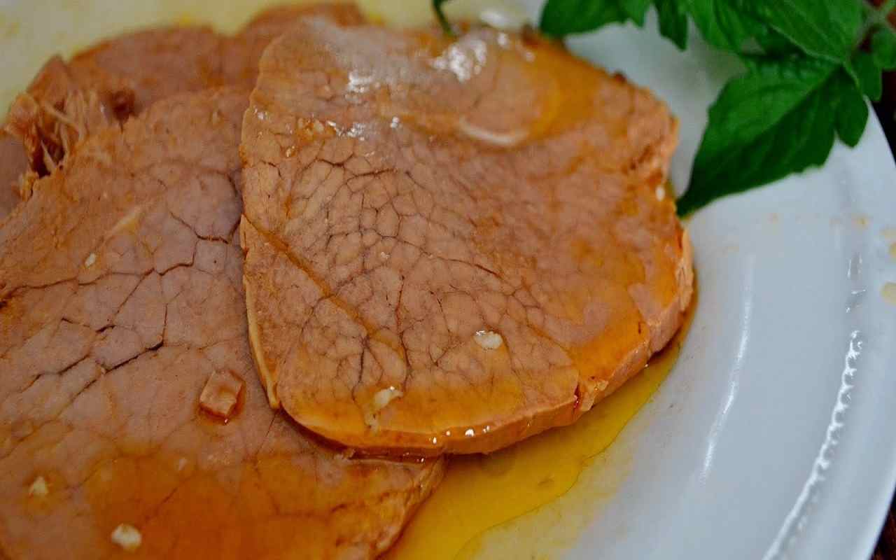 Mentre la carne cuoce, scaldiamo dell’acqua e sciogliamo al suo interno il concentrato di pomodoro. Mescoliamo bene e versiamo il composto nel tegame con la carne. Copriamo con un coperchio e lasciamo cuocere per circa 90 minuti, in modo che la carne diventi morbida e gustosa. Una volta pronta, togliamo la carne dal tegame e la tagliamo a fette una volta fredda. Nel frattempo, continuiamo la cottura del sugo per altri 30 minuti, in modo che si restringa e diventi più denso.