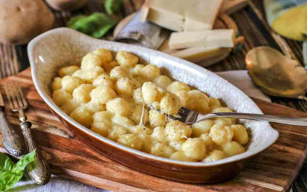 Successivamente, si porta a ebollizione una pentola d’acqua salata e si cuociono gli gnocchi per alcuni minuti. Una volta cotti, vengono prelevati con una schiumarola e trasferiti direttamente in una padella con la fonduta calda. Mescolando delicatamente, gli gnocchi vengono lasciati mantecare fino a quando sono pronti per essere serviti.